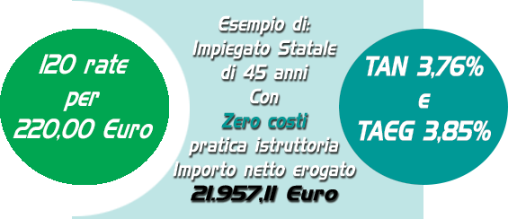 In questo periodo abbiamo la possibilità di offrirti questo prodotto: Cessione del Quinto dello Stipendio a Zero spese istruttoria e il TAN più basso del mercato!